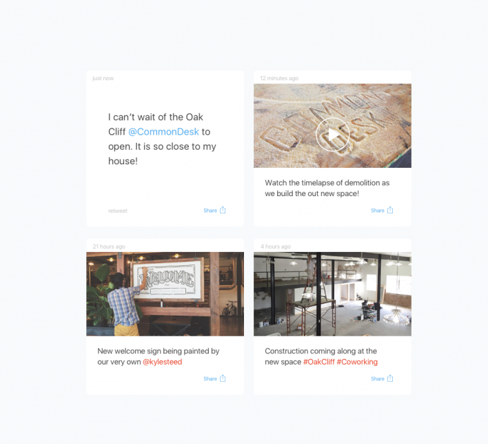 Identifying the marketing challenge, and inspired by Apple's Worldwide Developer Conference website, LionsMouth created an offshoot of the Common Desk website for the new location and built a platform for selective posting of tweets to generate buzz within the new community location.